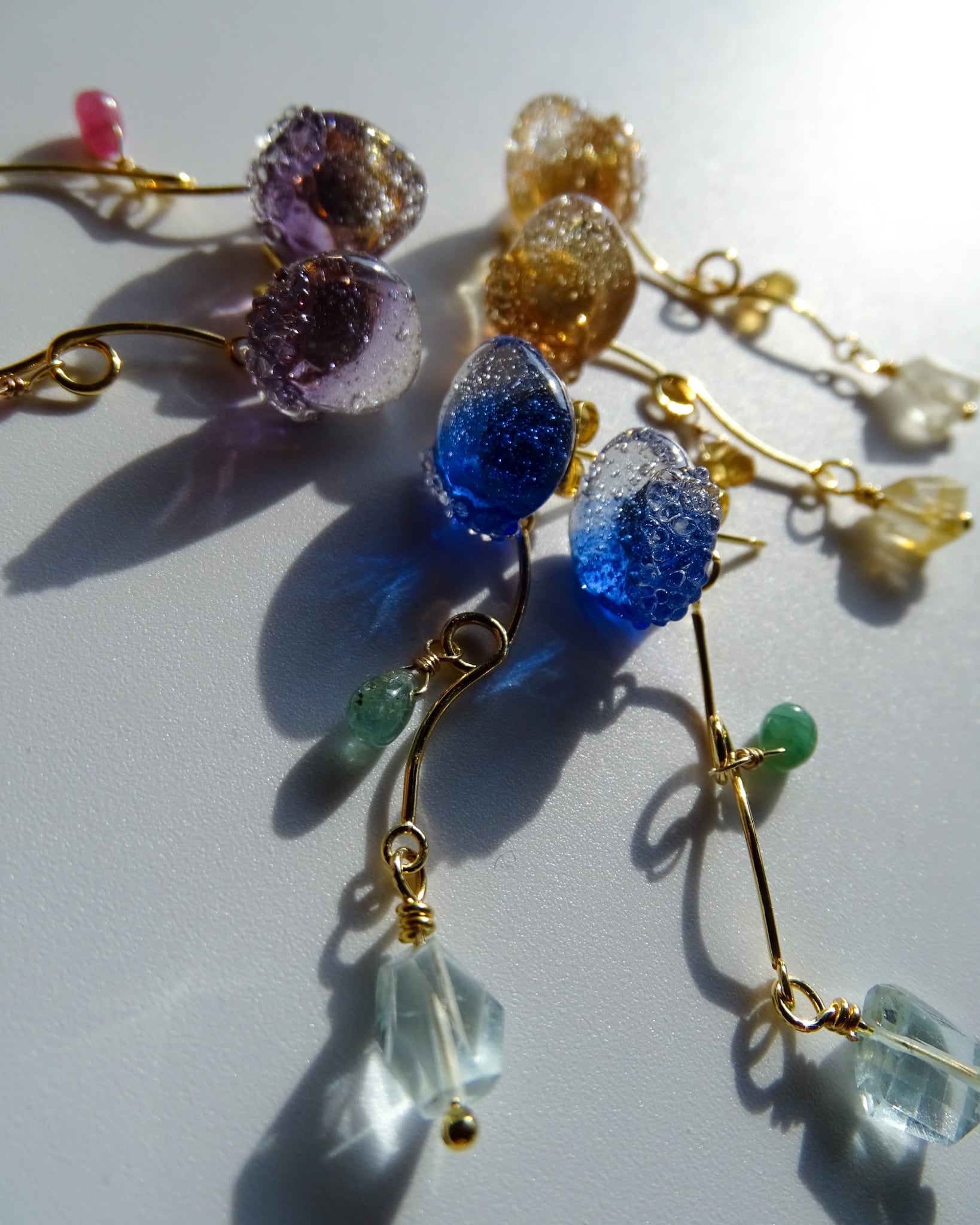 チャーム部分には、それぞれの色に合わせた天然石を。