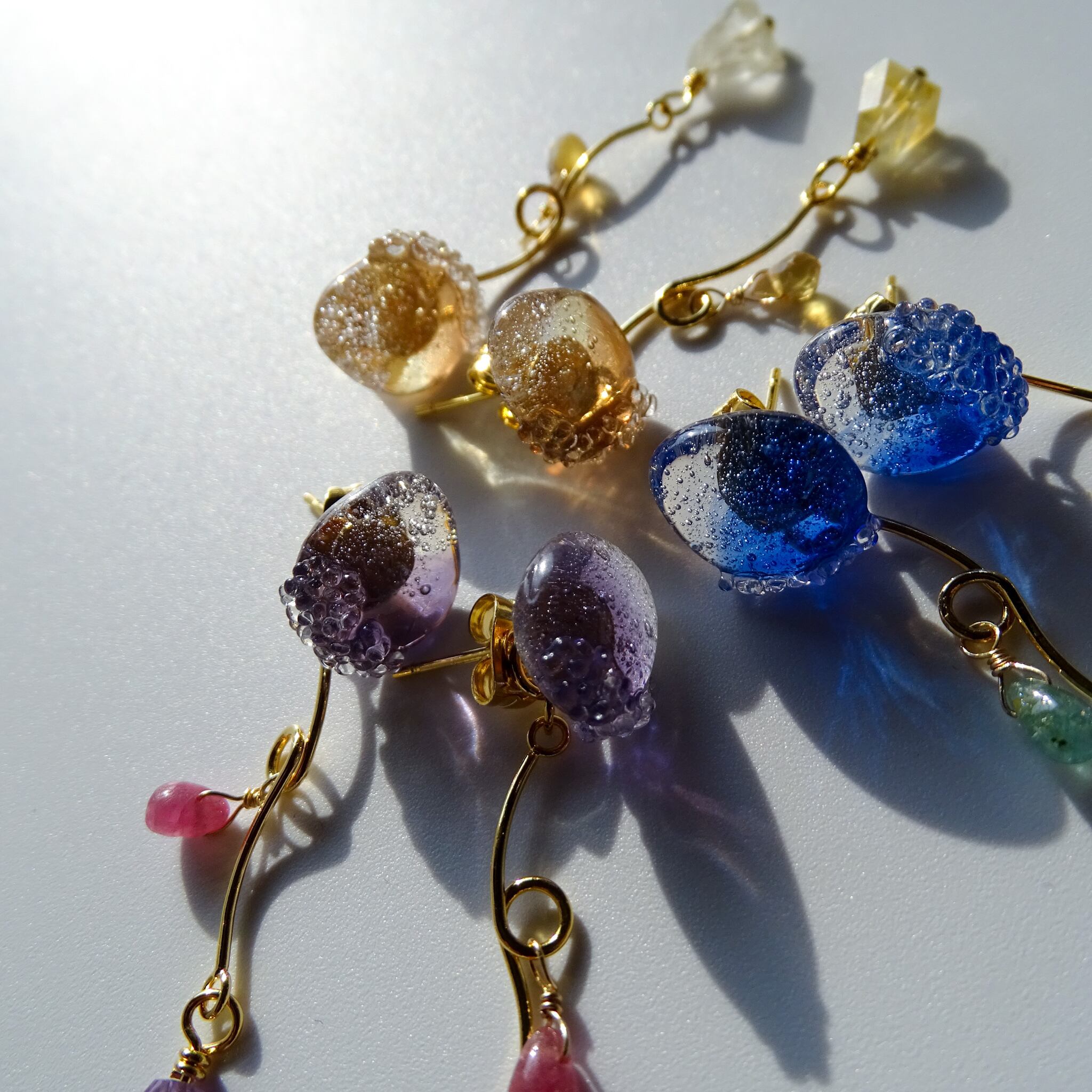 トップには樹脂で仕立てた、ぷっくりとしたクリアパーツを。