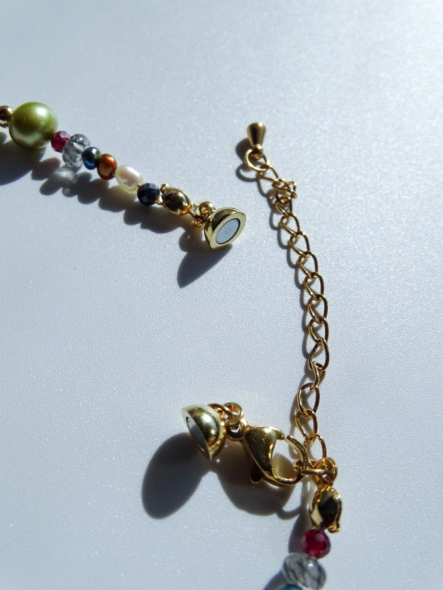 ストーンネックレスのマグネットはゴールドメッキ、アジャスターはステンレスです。