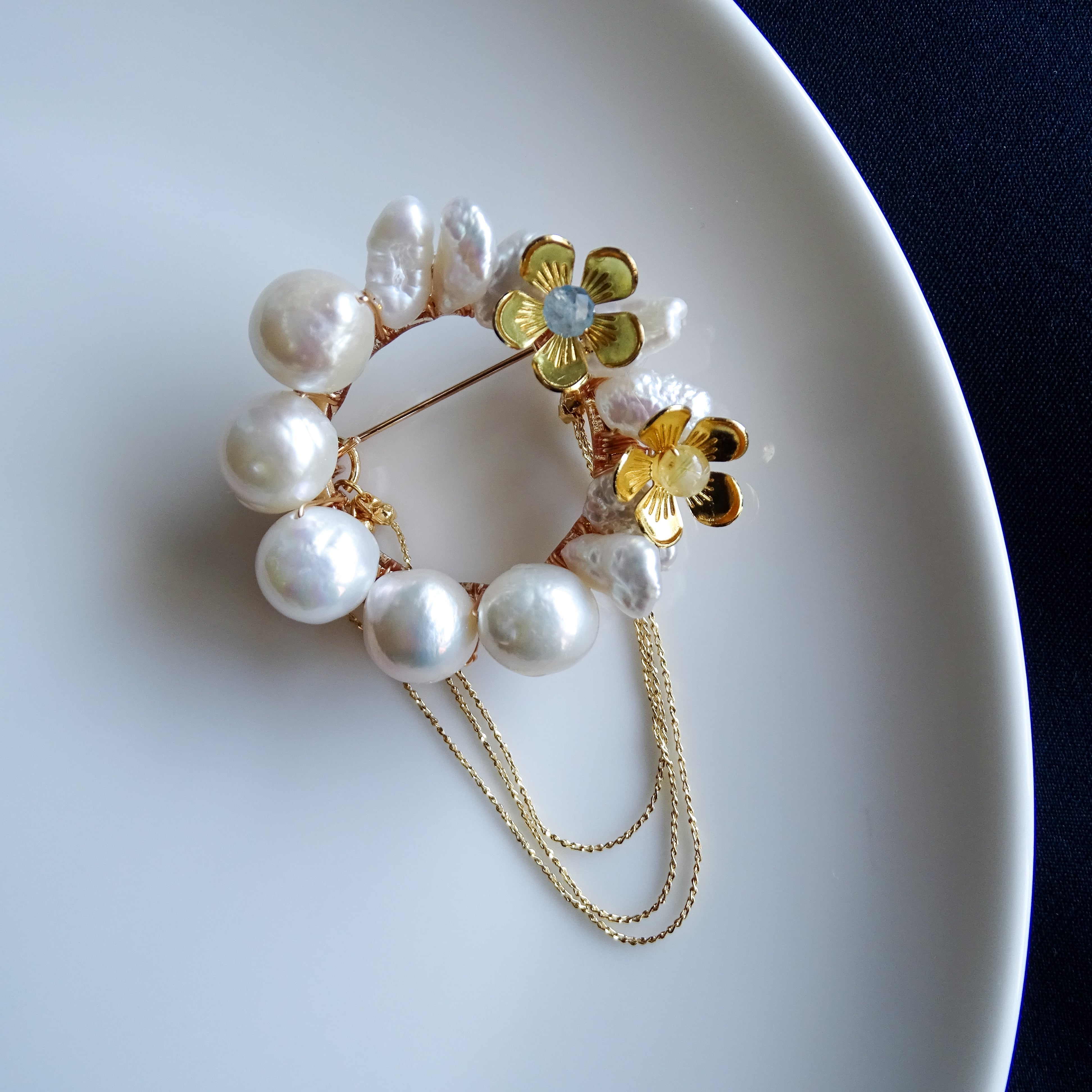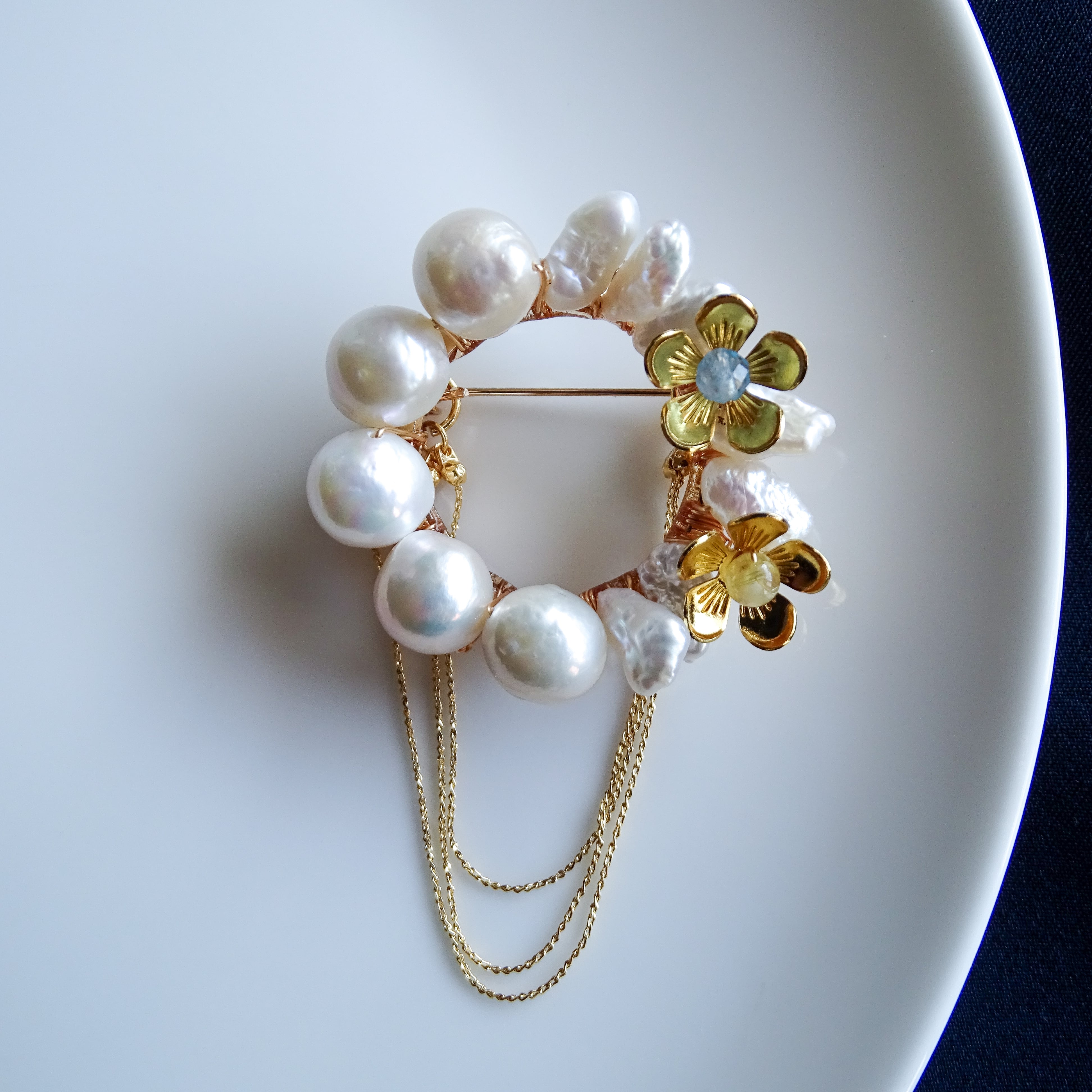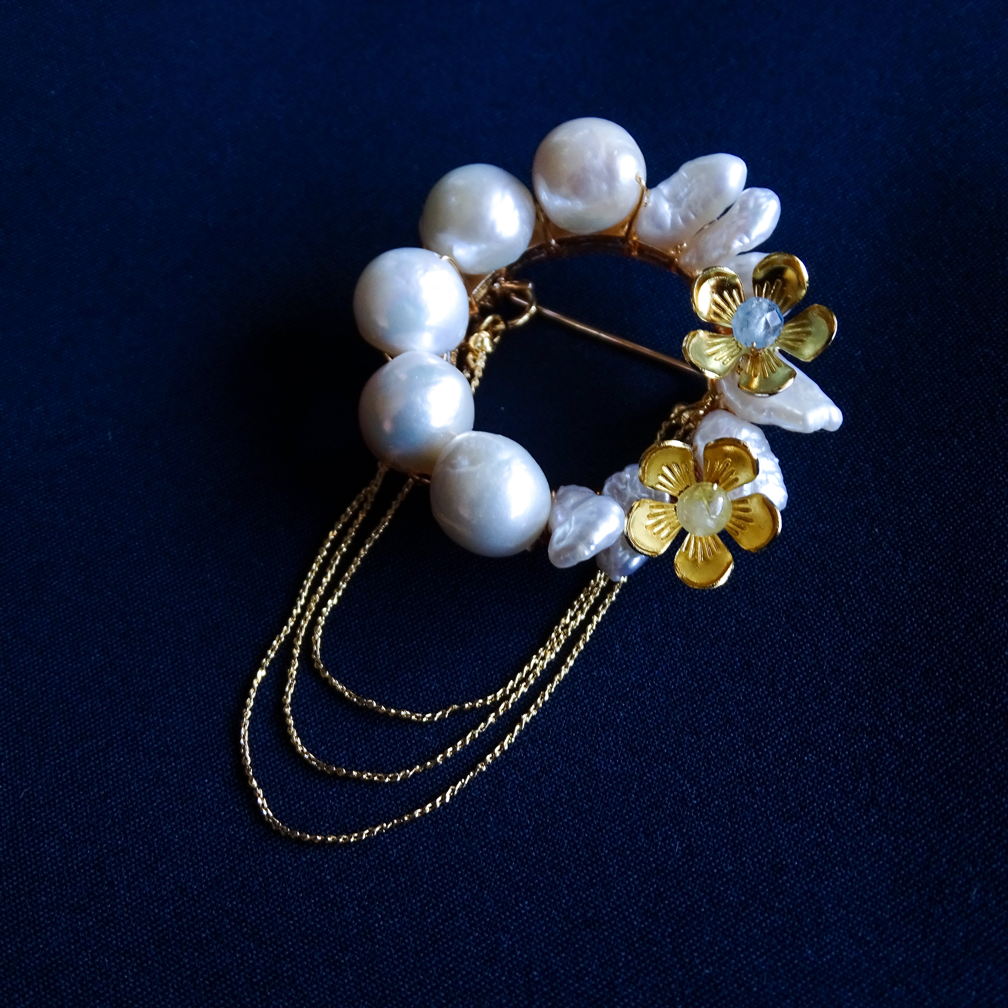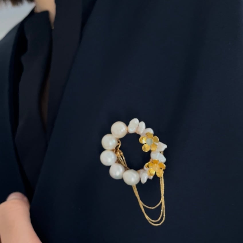 【チェーンが取り外せる!】バロックパールの2wayフラワーブローチ 【 -en- 】