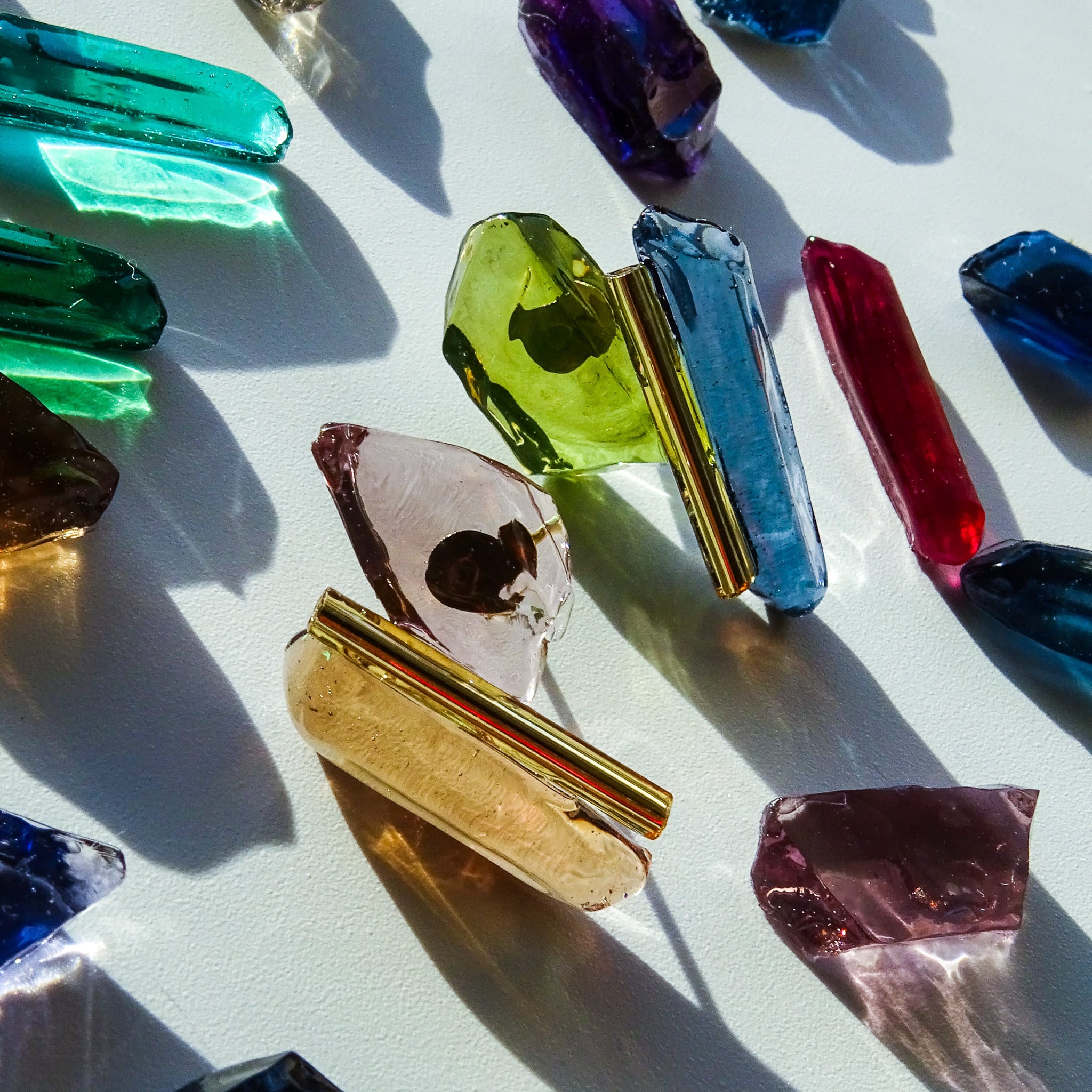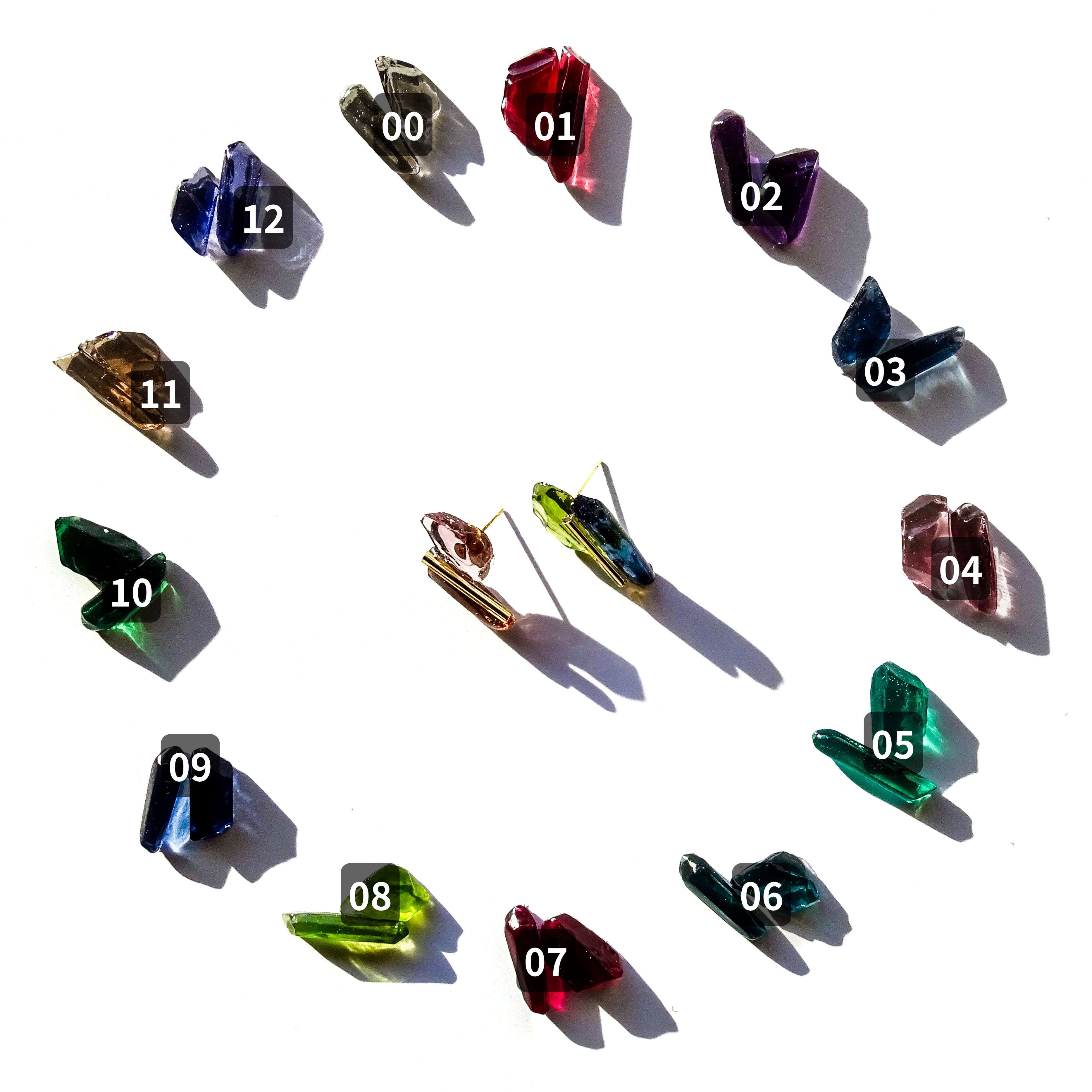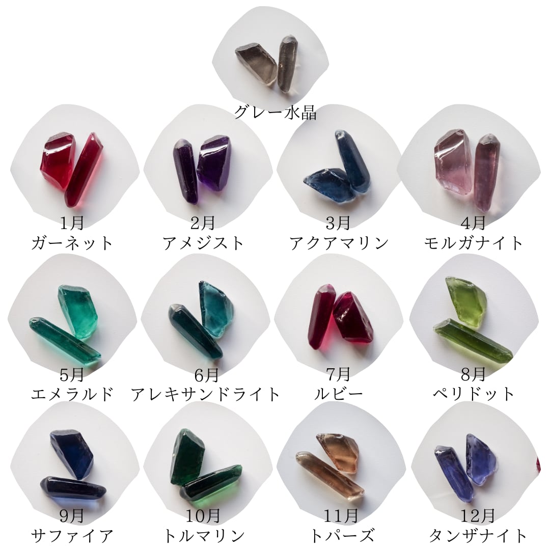 樹脂で製作した誕生石カラーの鉱物。