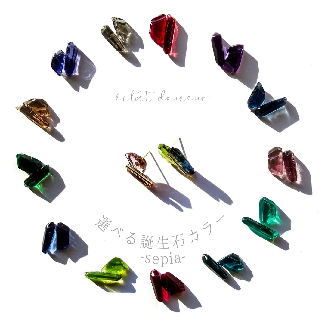 【選べるカラー】 pierre de naissance -sepia- 誕生石カラー 鉱物ピアス