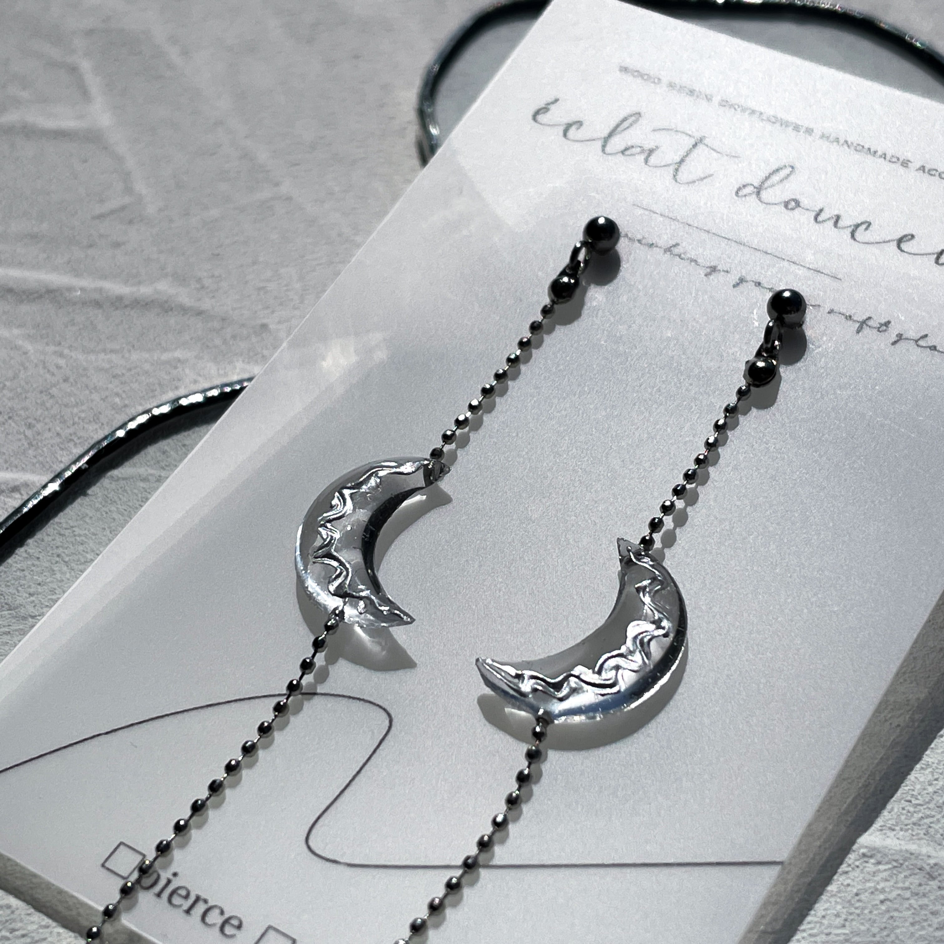 月とボールチェーンのピアス|イヤリング【 la lune 】 サージカルステンレス 金属アレルギー対応 SUS316L