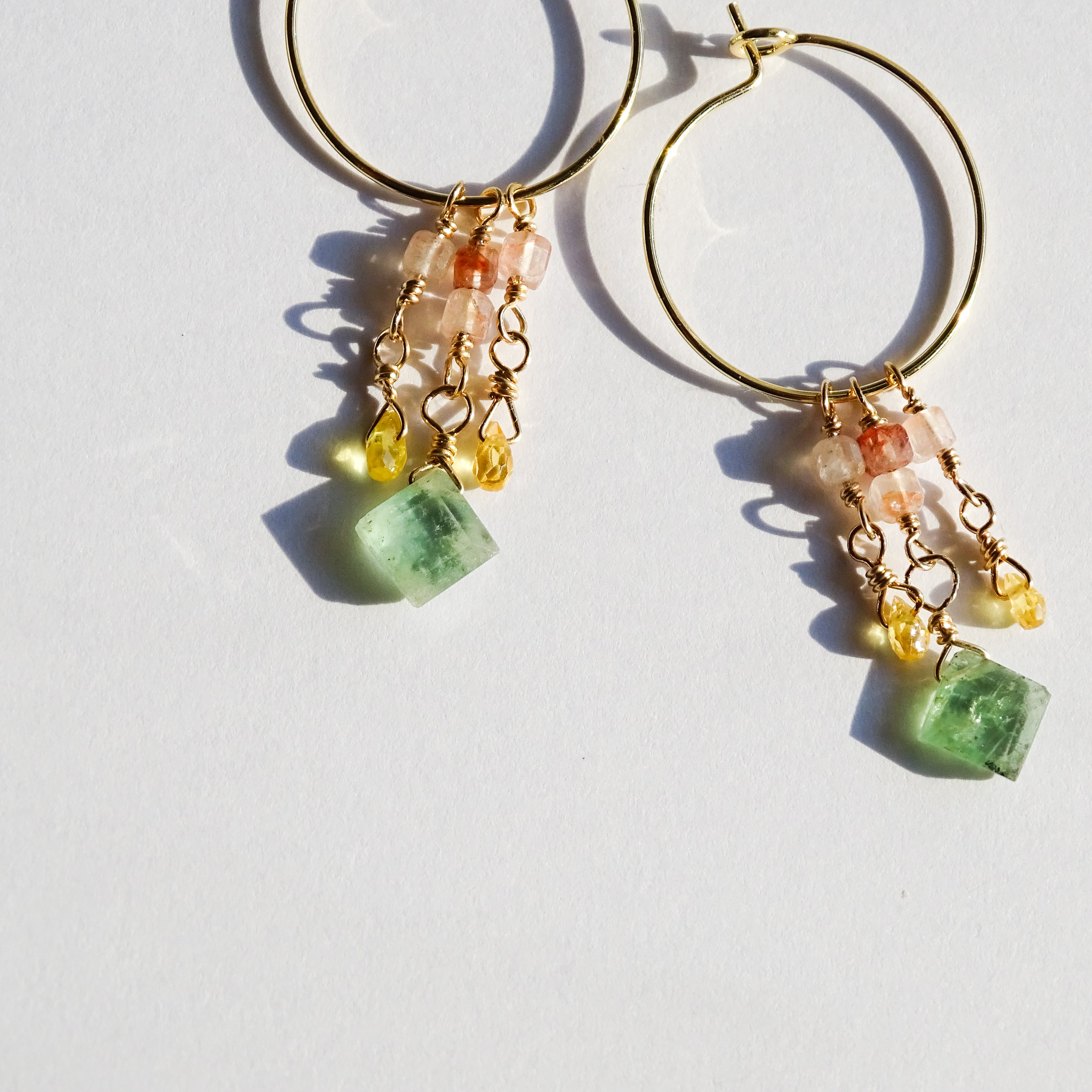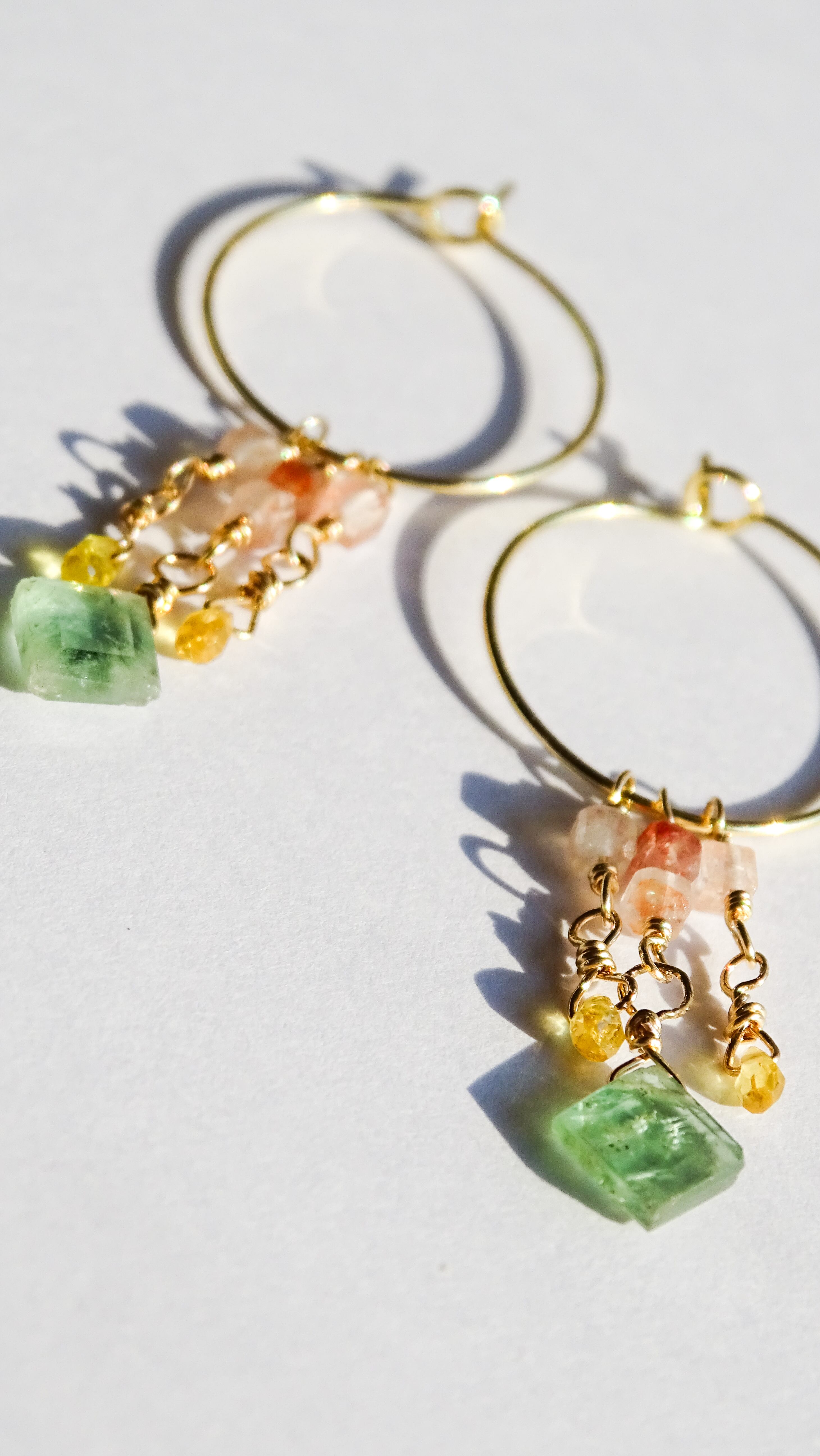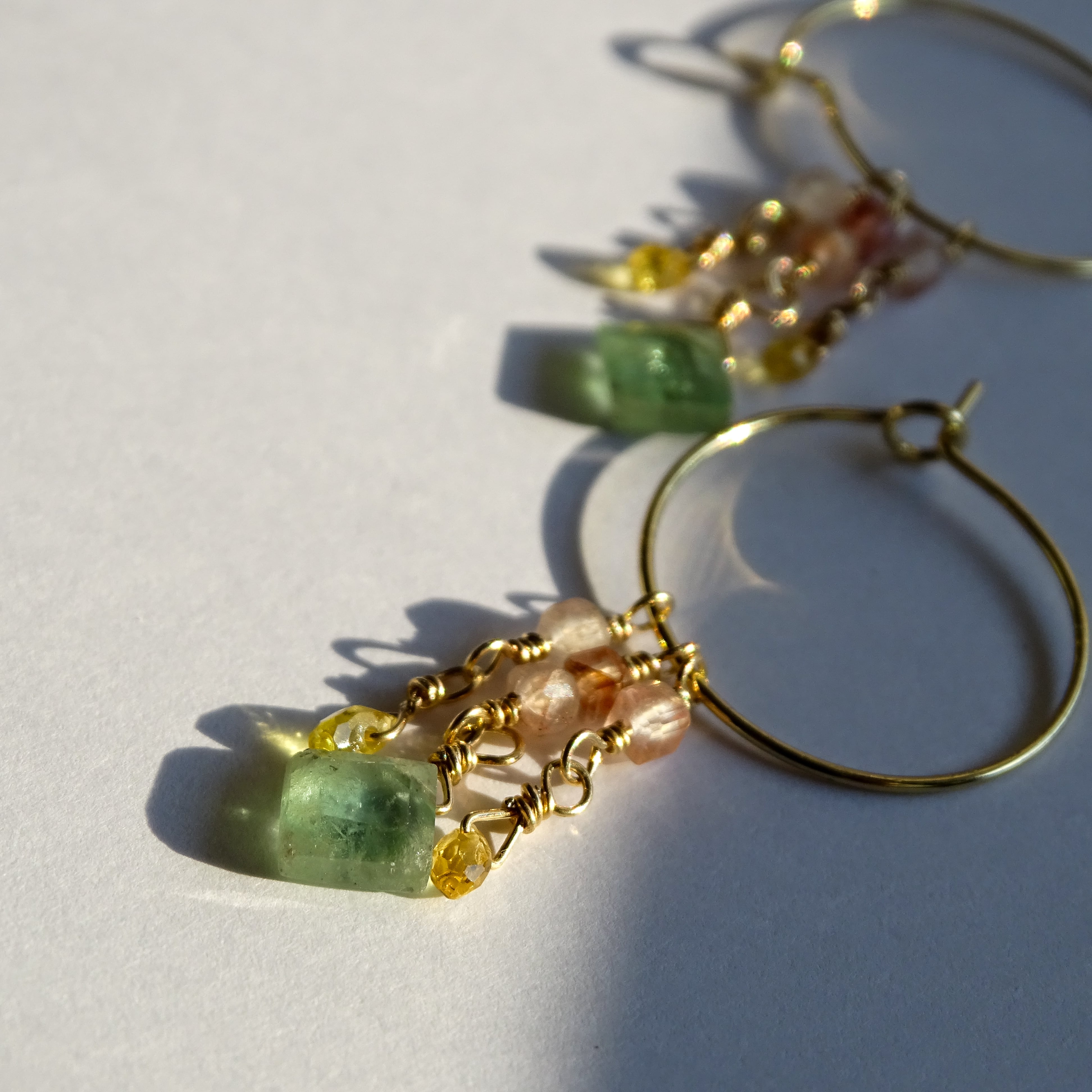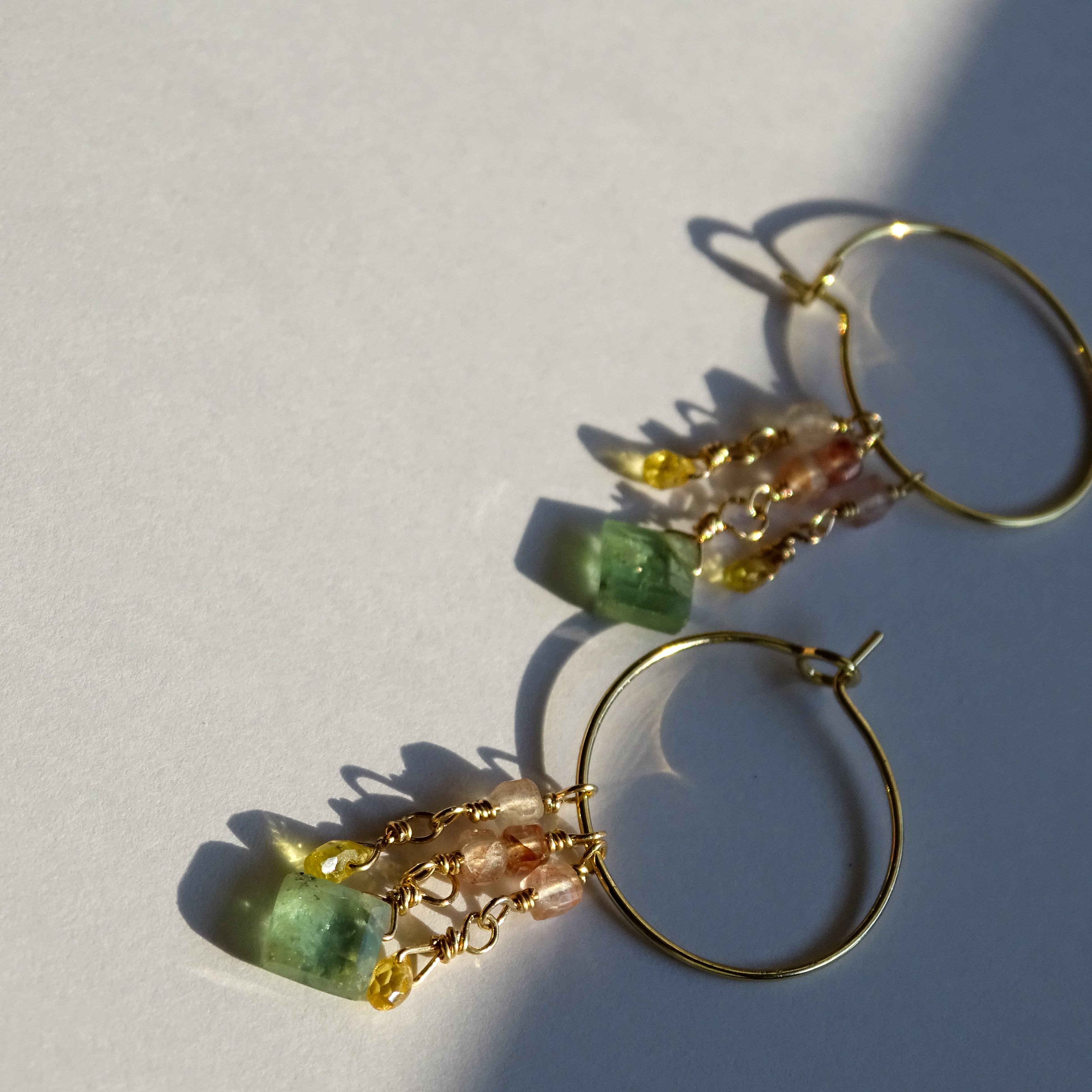 ミントグリーンカイヤナイトとサファイア マニカランのフープピアス |サージカルステンレス 14kgf