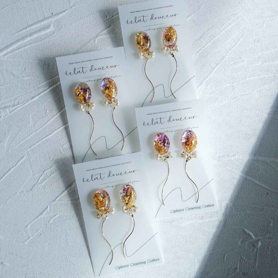 「 Radiant balloon 」風船ピアス 金箔 クリア レジン ピアス 金属アレルギー対応