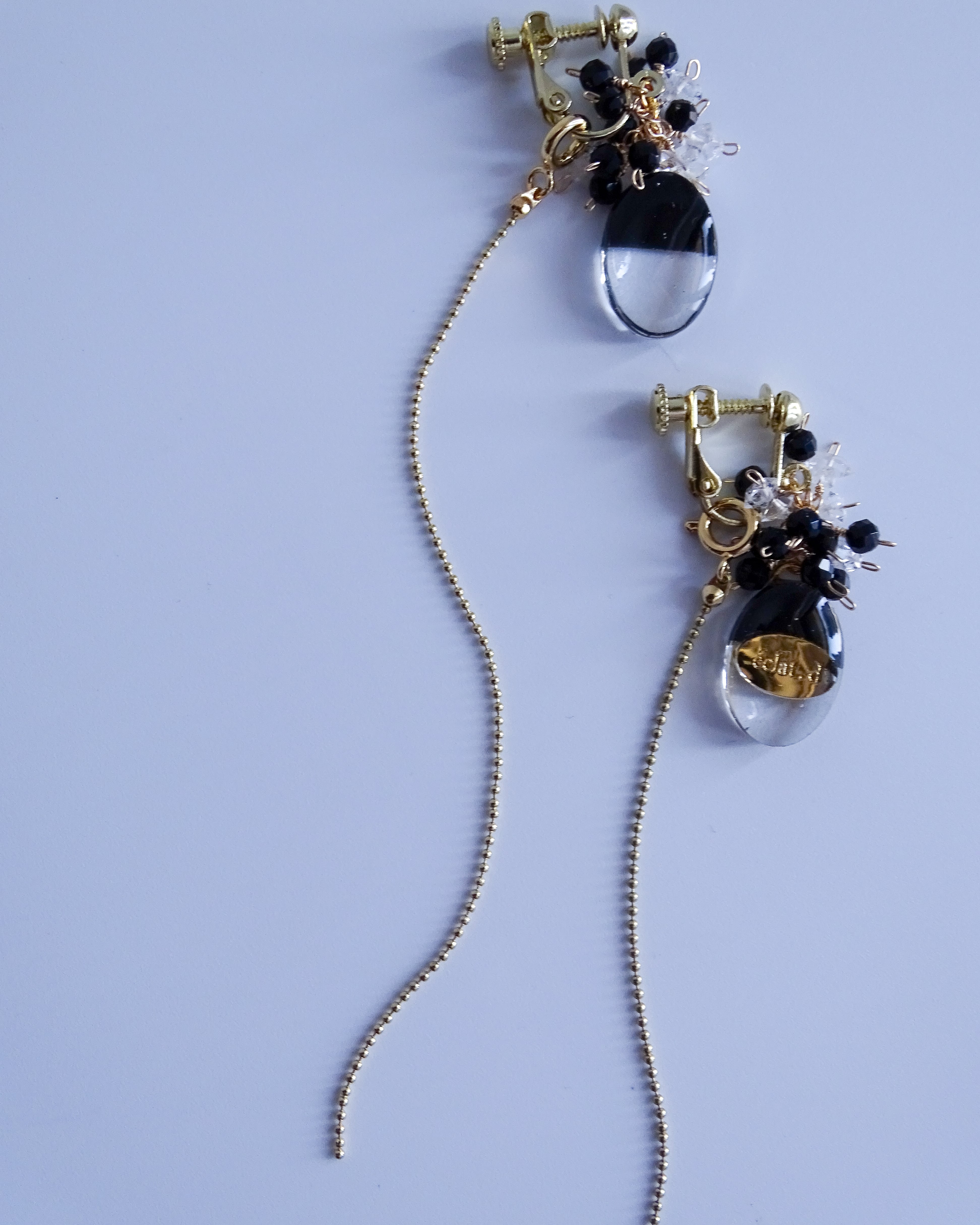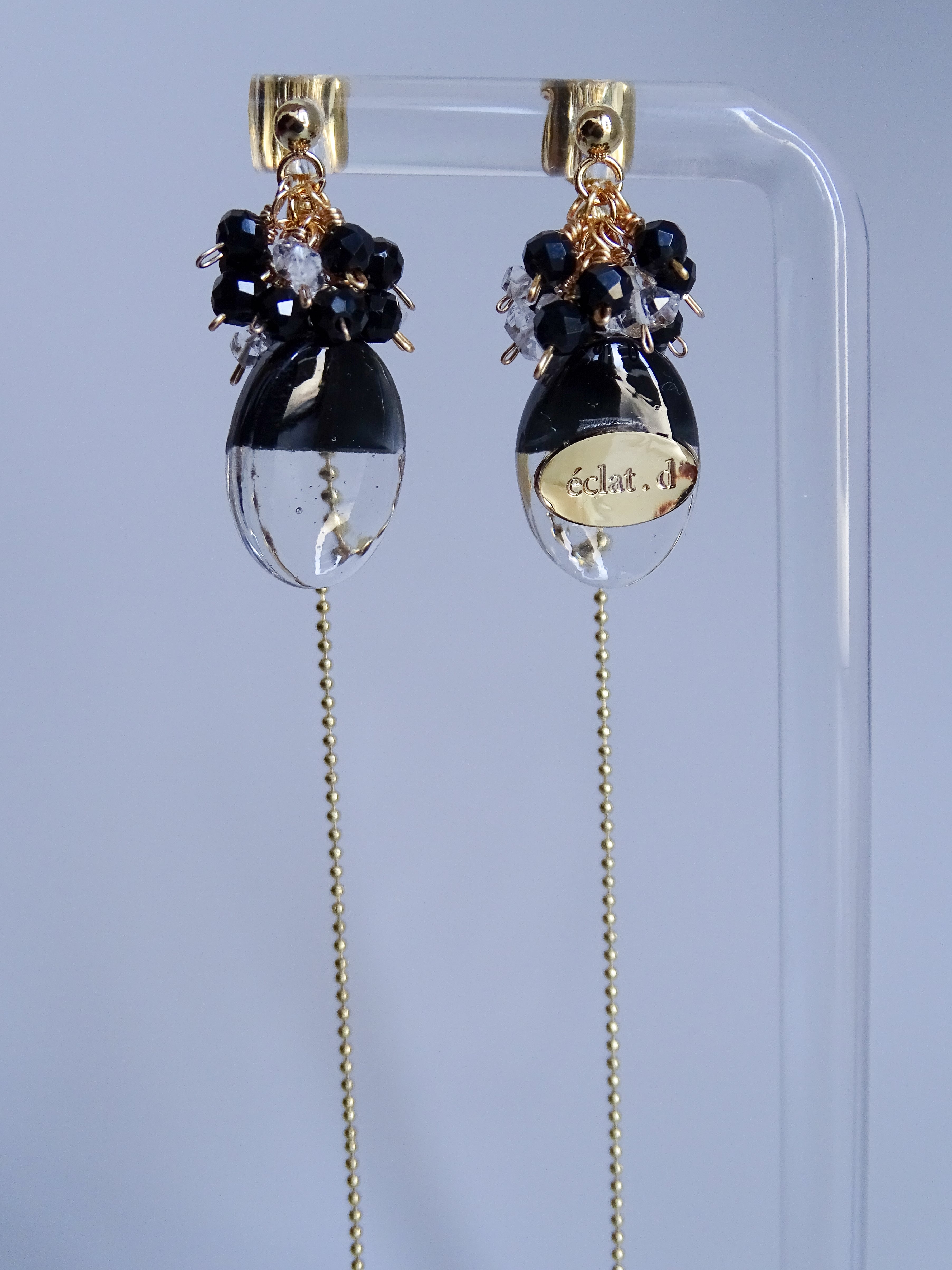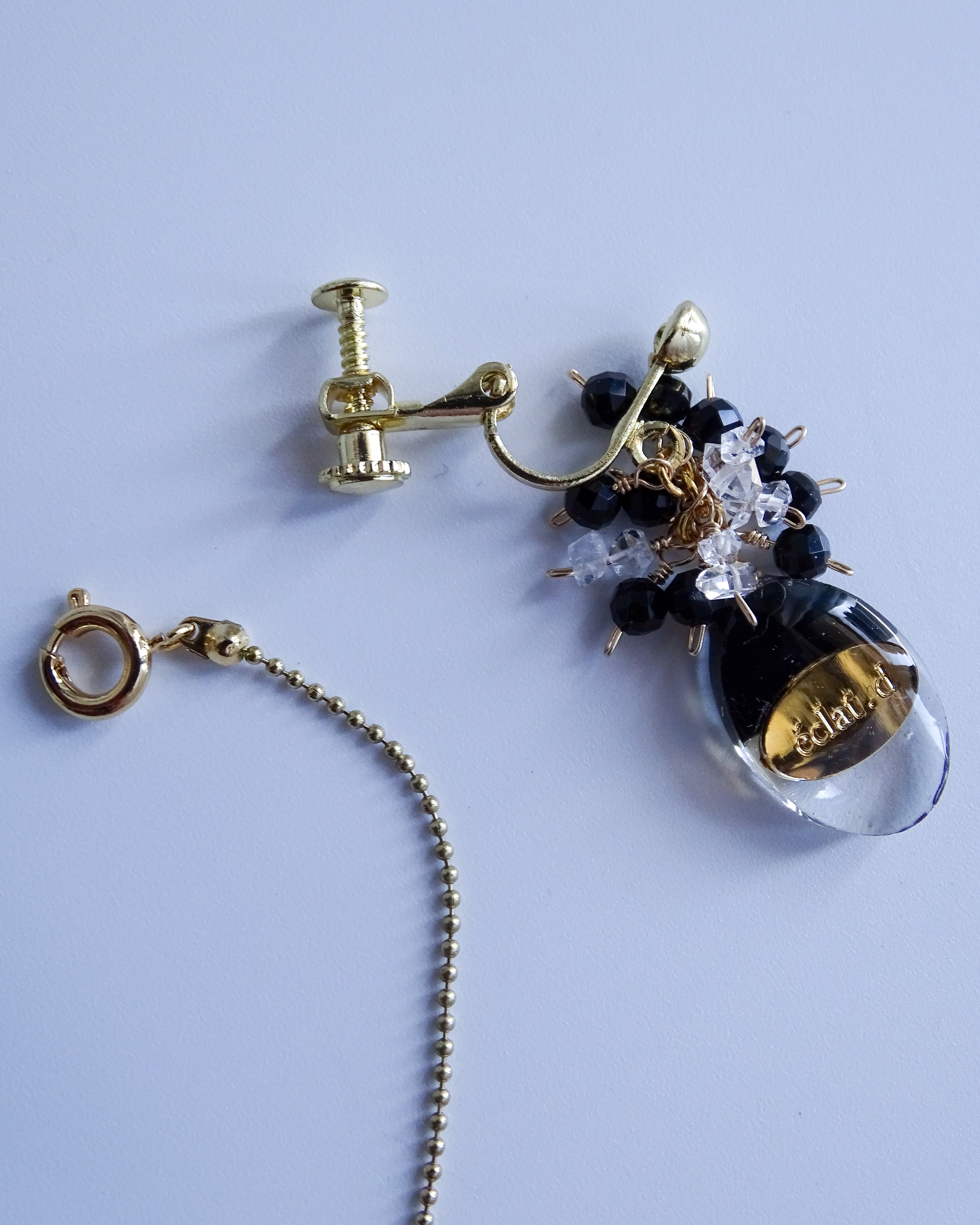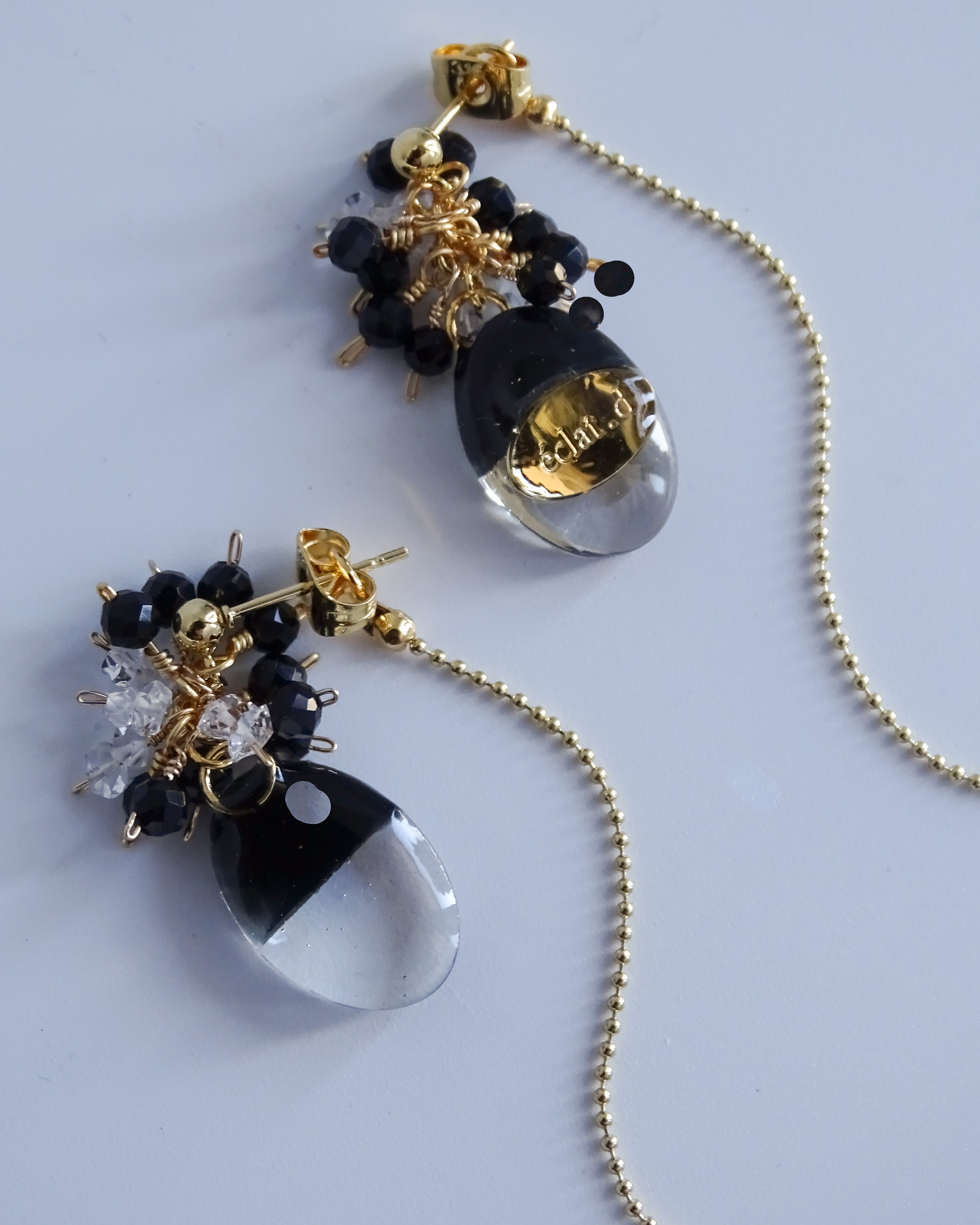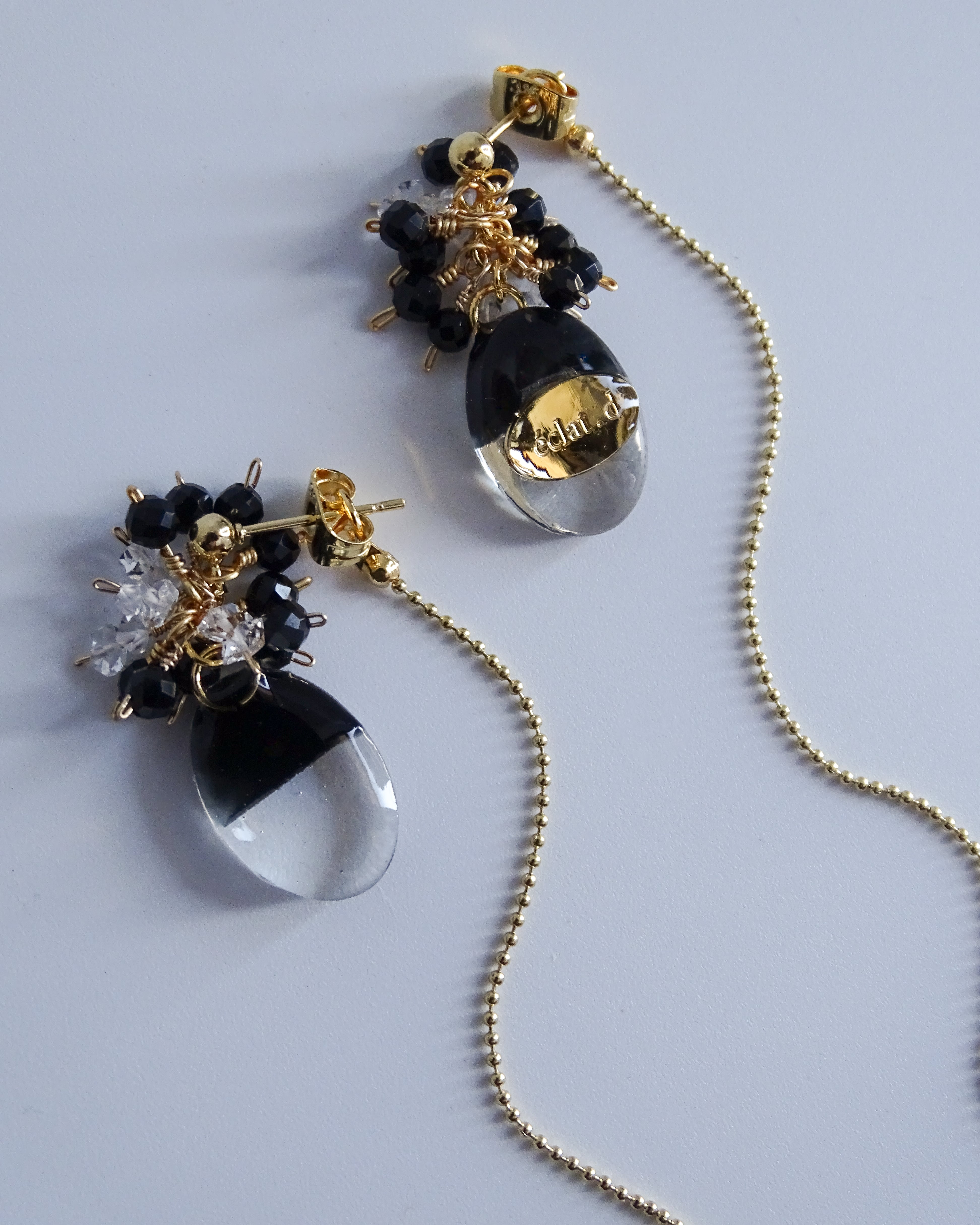han-kuro オニキスとハーキマーダイヤモンドの2wayピアス | イヤリング